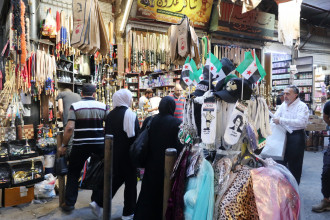 Facciamo un giro nel suq Al Hamidiyeh, al centro della città vecchia, affollato e multicolore; tutto sembra come sempre, se non fosse per i banchetti che vendono souvenir del nuovo regime e caricature di Assad. Poi però, a due passi dalla Grande Moschea degli Ommayadi, cominciamo a intravedere uomini armati. In divisa e non, da soli o in piccoli gruppi, giovanissimi o più maturi, sfrecciano sui motorini, passano tra la gente o sono seduti a guardare il passeggio. Portano kalashnikov e pistole con la massima naturalezza e i passanti sembrano non farci caso, anche se la loro sola presenza basta a creare un clima di tensione e inquietudine. Ai margini del centro, le panetterie sfornano il qubz, il pane tipico, a prezzo sussidiato. Decine di persone fanno lunghe file per averlo e una volta ottenuta la propria razione si fermano ai lati delle strade per rivenderlo. Sono soprattutto uomini anziani, donne in nero e ragazzini che cercano di raggranellare qualcosa per campare. Tutti sperano che le cose in futuro vadano meglio - “We wish..” si sente dire ovunque - ma negli sguardi si percepisce spesso la disperazione.