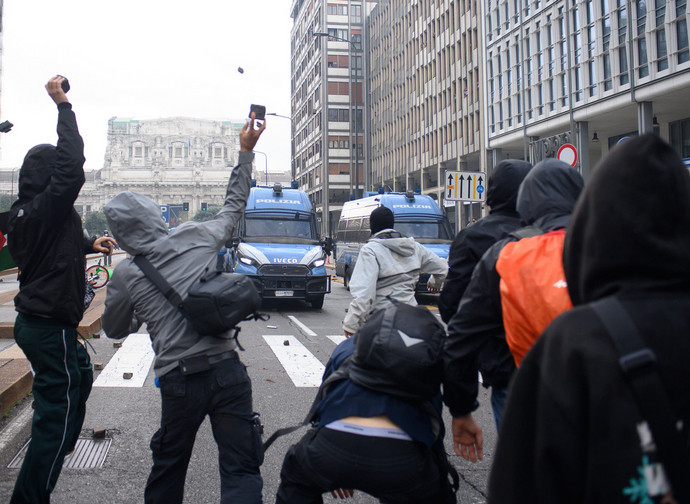 Le scene di guerriglia urbana di ieri a Milano hanno pochi precedenti nella storia del capoluogo lombardo. Un gruppo di manifestanti ha tentato di forzare l’ingresso della stazione Centrale. Gli agenti di polizia in assetto antisommossa hanno risposto con cariche di alleggerimento e numerosi lanci di lacrimogeni, nel tentativo di contenere l’assalto. I manifestanti hanno reagito lanciando oggetti, bottiglie, taniche, cestini, parti di impalcature e persino biciclette. Sono stati distrutti vetri e arredi urbani, mentre l’accesso alla stazione è stato chiuso per motivi di sicurezza. I violenti hanno costruito barricate improvvisate in via Vittor Pisani, bloccando il traffico e costringendo i commercianti ad abbassare le saracinesche.
