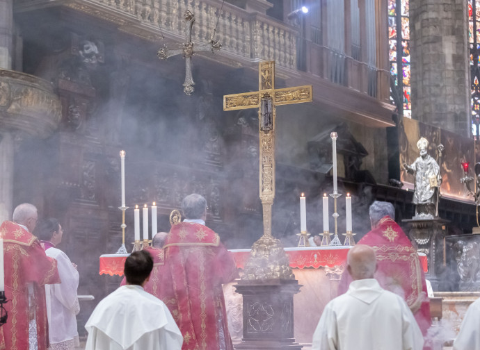 Altro tempo “forte”, la Quaresima. Se nel rito romano il periodo di preparazione alla Santa Pasqua comincia con il tradizionale rito dell’imposizione delle Ceneri, per quello ambrosiano non è così. Il rito ambrosiano non contempla questo giorno, il “mercoledì delle Ceneri”, come inizio del tempo quaresimale: la Quaresima inizia dalla sesta domenica prima di Pasqua, o prima domenica di Quaresima. In questo giorno, tutto prende avvio con la lettura della pagina del Vangelo che ci presenta il digiuno di Gesù nel deserto e le tre tentazioni da parte del demonio: il Vangelo di Matteo, al quarto capitolo. Inoltre, il profondo e antico legame della Quaresima con il Battesimo  – era proprio in questo periodo, all’inizio del Cristianesimo, che i pagani si preparavano a ricevere il sacramento del Battesimo  – viene evidenziato nella Quaresima ambrosiana: non è certo un caso che nelle quattro domeniche centrali (che sarebbero dalla seconda alla quinta domenica) troviamo pagine del Vangelo che sviluppano il tema, appunto, del Battesimo. Come schema delle domeniche di questo tempo liturgico forte, abbiamo: I di Quaresima, le tentazioni di Cristo; la seconda detta della “Samaritana”;  la terza, detta “domenica di Abramo”;  di seguito, la quarta, quella “del cieco”; la quinta è chiamata “di Lazzaro” per poi avere, infine, la domenica delle Palme. Altra importante differenza: durante questo periodo sono presenti i “venerdì aliturgici” cioè privi della liturgia eucaristica. Un modo ancor più profondo per vivere il periodo penitenziale proprio del tempo quaresimale. Meriterebbe un capitolo a parte la questione dei colori liturgici: il rosa, ad esempio, non viene utilizzato nelle celebrazioni, ed è invece presente il color morello, ossia un misto tra il viola e il nero. Una particolarità che, ancora una volta, conferma l’influenza orientale sul rito ambrosiano: intorno al collo della dalmatica, il paramento liturgico proprio dei diaconi, oppure della pianeta o della casula (tutti paramenti ad uso dei presbiteri) viene messo il cappino, striscia di tessuto pregiato assai varipionta con colori che richiamano l’Oriente. Rito ambrosiano, un rito da scoprire e riscoprire sempre di più.