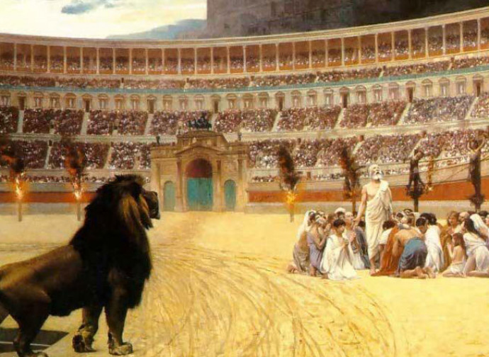 Il proconsole Stazio Quadrato gli rinnovò l’offerta di abiurare e gli chiese di dire «abbasso gli atei», perché tali erano considerati coloro che non veneravano le divinità pagane. Policarpo, che invece considerava atei i non credenti in Cristo, guardò la folla dei pagani, sospirò e, alzando gli occhi al cielo, disse: «Abbasso gli atei». Invitato poi a maledire Cristo, rispose: «Da 86 anni lo servo e non mi ha fatto alcun male. Come potrei insultare il mio Re che mi ha salvato?». A nulla valsero le minacce di esporlo alle belve e al fuoco. Il proconsole mandò l’araldo a gridare per tre volte in mezzo allo stadio: «Policarpo ha confessato di essere cristiano». Fu allora preparato il rogo, che accettò con gioia, benedicendo Dio: «Signore […], io ti benedico perché mi hai reso degno di questo giorno e di questa ora per prendere parte nel numero dei martiri al calice del tuo Cristo, per la risurrezione alla vita eterna dell’anima e del corpo».